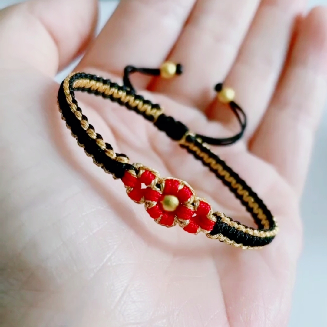 Be the first to review “Handmade Bracelets Red Gold Black Bracelets Adjustable Sliding Knot Finished”