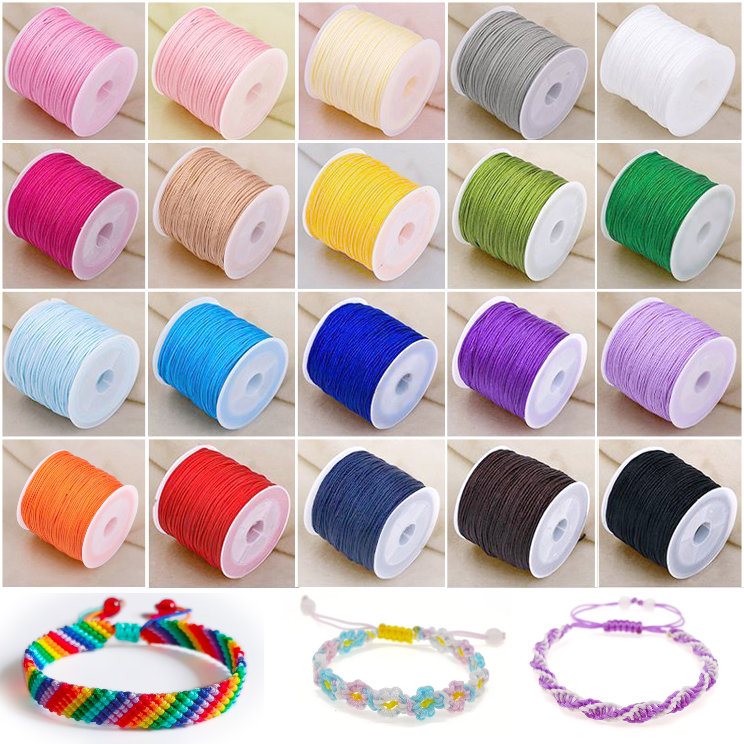 - Nylon String for Bracelets: Package comes with 20 rolls of nylon cord in various colors, great for kumihimo, braided bracelets, beading, macrame knotting, jewelry making, costume and garment making, crafting, wrapping, wind chimes and tassels making
