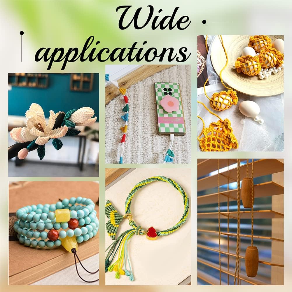 - Explore DIY Pleasure: The nylon thread is ideal for sewing, braiding, hanging, wrapping, sewing, and beading. Particularly suitable for making bracelets, necklaces, lanyards, face mask chains, hanging decorations, wind chime, dream catcher, drawstring bags, Chinese knots and other crafts